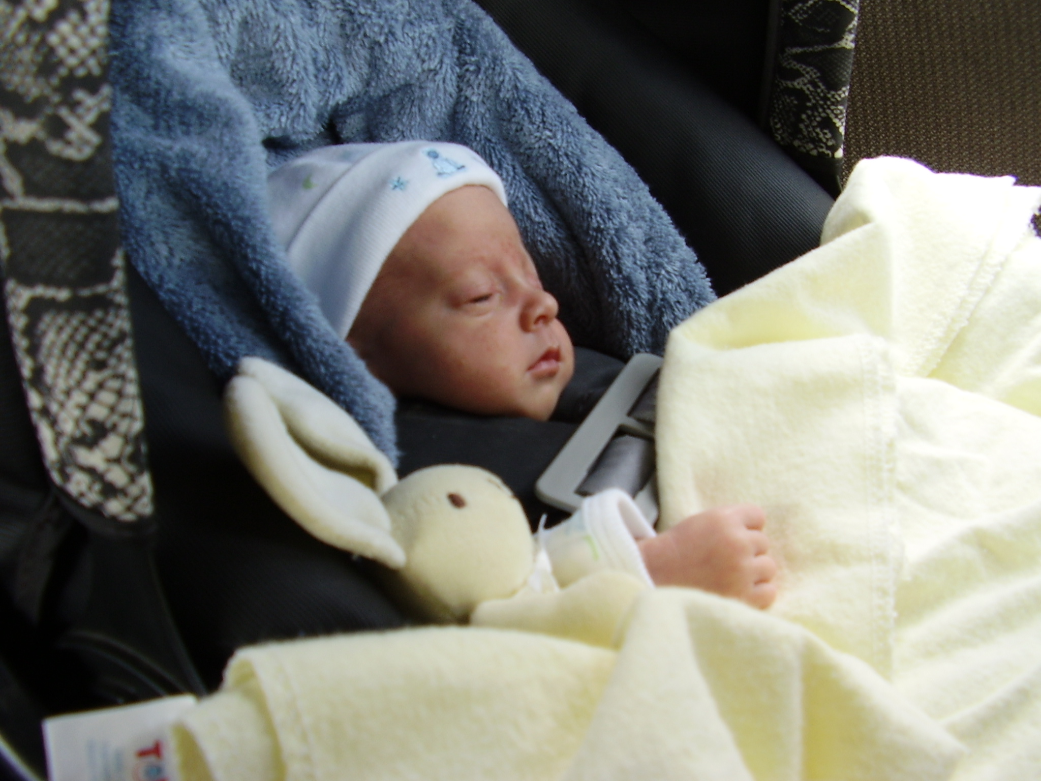 Liam's first ride in the car seat, coming home two days later.