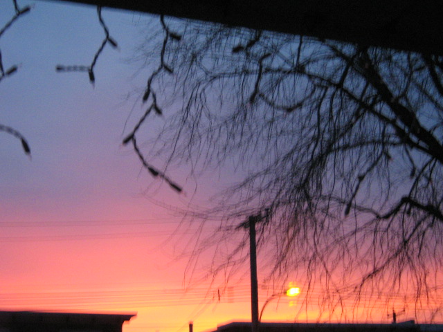 What an incredible sunrise this morning. I’ll upload a photo later, once I’m back from dropping Liam off. It began the day very nicely. (Later: Uploaded! It’s blurry because I didn’t want to use the flash, but I don’t care because it still gives some sort of idea of how beautiful it was.)