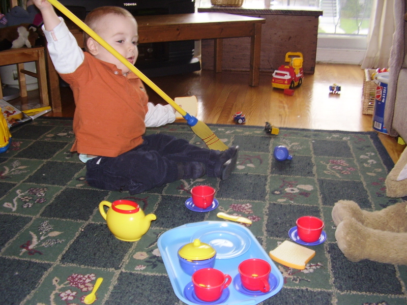 Or he can go crazy, galloping around whooping and swinging his broom above his head, or run up behind you to dance and giggle madly before dashing off again to make you chase him. I love his all-consuming giggles that he can’t stop when HRH kisses his tummy, or we tickle under his chin. Every day HRH and I are astonished at the new things Liam does, or the new connections he makes. We realised last week that we were being awed by a perfectly natural process, but the fact that it’s natural is what makes it remarkable. The mental, emotional, and physical development of a human being is an extraordinary thing, and it’s the privilege of a parent to be at ground zero to be able to appreciate the evolution of a child from the very first day. I went through Liam’s cupboard the other day and packed away all the clothes and toys that he had outgrown, and I found some 0-3 month onesies at the very back of a shelf. Was he ever that small, I wondered, and then realised that he had been even smaller. We frequently forget, and yet that fact is one of the reasons we can appreciate how much of a enthusiastic toddler he is today. From newborn to toddler, a child learns so very much in such a short period of time. It’s an incredible thing. Plus, it’s a lot of fun. Sure, we’re tired, and we get frustrated too, but I think the pluses outweigh the minuses. Liam is such a terrific kid.