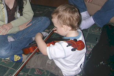 His current favourite music: He seems very fond of the Rankin Family when he hears them on the radio and will dance immediately, commanding me to dance too. When the music changes to something else he looks at the radio and says, “More dancing!”. I put on a Rankin Family CD for him one day when he looked sad because the song was over, and he had a blast. HRH caught him conducting to Bach’s sixth Brandenburg concerto the other day.