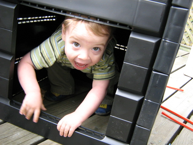 There’s an odd sort of double reality happening. In one life, we’re moseying along living side by side with our easy-going toddler. In the other, we’re racing to catch up, to think ahead, and come up with things to challenge or entertain him. It’s no wonder we’re tired: keeping up with him mentally is a challenge, quite apart from running around with a quicksilver toddler who weighs almost a third of what I do.