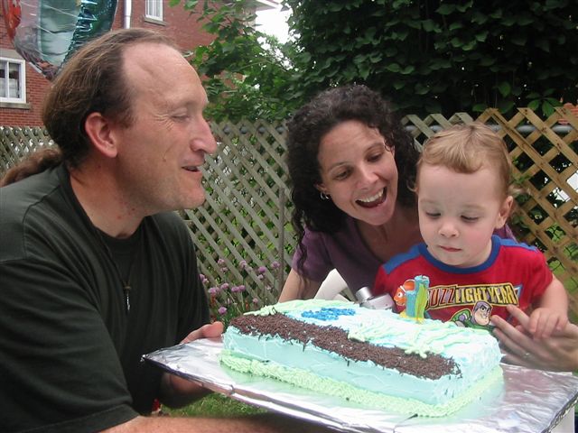 He blew out his Nemo birthday candle in one puff at his party. As proud of him as I was about how cheerful and polite he was with everyone, I think that single action made me happier and I don’t know why. He got to hold the candle and licked the icing off the bottom, then later we caught him smooshing the candle’s base in the frosting in order to lick it off again. I honestly can’t blame him; it was awesome icing. (Next time I double the recipe for the cake, though, I will bake it for the same amount of time a single batch would need. It was delicious, but too dry for my taste.)