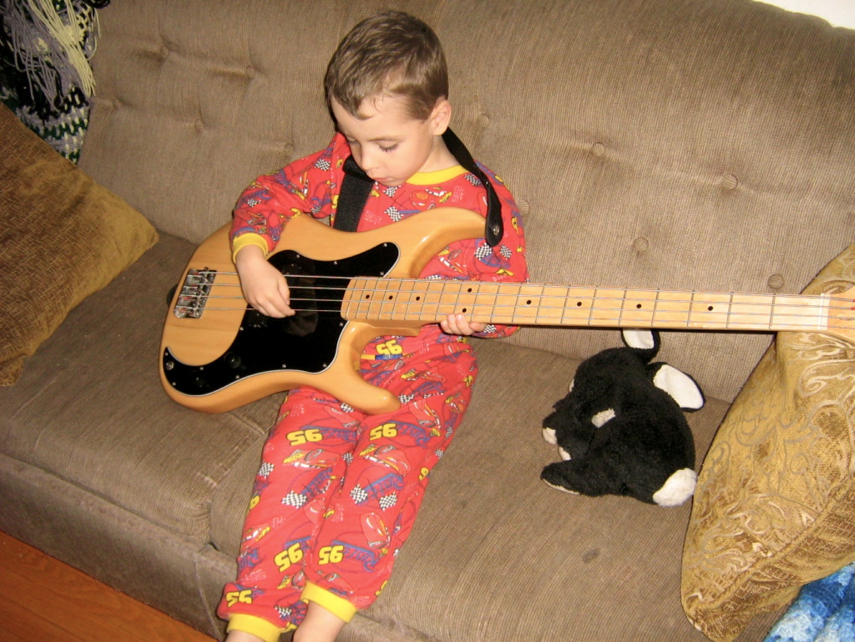 He used to sleep on his side, but recently he’s begun sleeping like I do, on his back with his arms above his head. (I have no idea how I get that way; I fall asleep curled up on my side.) But sometimes an arm gets trapped underneath him, and twice now he’s woken up crying in the morning because he can’t feel an arm or hand, because they’ve fallen asleep. And then he cried because the pins and needles sting as the blood gets back into the affected area. A couple of weeks ago we were in the basement one evening and we heard a fitful cry over the baby monitor, a cry unlike anything we’d heard from him since he was a very tiny baby. Now, he never wakes up crying; no nightmares, nothing. So we hurried upstairs and he was still half-asleep, unable to move either of his hands and forearms because he’s somehow gotten them both trapped underneath him. I rubbed them till the pins and needles went away, and cuddled him back to sleep.
