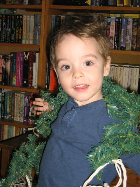He got a pair of new boots last week. He’s wearing size 3X to 4 tops, size 7.5 to 8 shoes, and size 3 pants now. He’s sleeping ten to eleven hours at night, and has on average a two-hour nap in the afternoon. Liam has his two and a half year old appointment with the doctor at her new location on Thursday, so we’ll have formal measurement of weight and height and so forth then. We know he’s over thirty pounds, and guess he’s around 33. I’ll update this post with the particulars when I’ve got them.