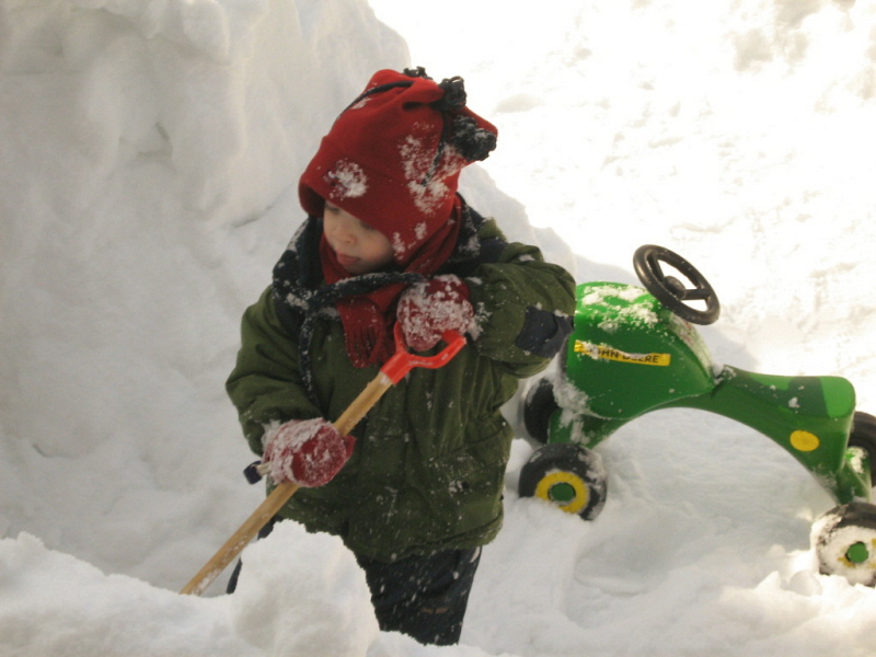 Completely unrelated to this, he declared that he was Chef Liam the other day as he was helping me cook. I was browning beef cubes for stew when he took the spoon away from me and said importantly, “No, I stir, I Chef Liam.” So, keeping a watchful eye on him beside the stove, I let him finish browning the meat, then the onions and carrots. Then he helped me roll out pizza dough, spread the sauce on it by himself, then scattered some cheese, the pepperoni, mushroom, peppers, and then piles and piles of mozzarella on top! All I did was neaten things up and put in in the oven. Not long after that he came home and said, “I be a train driver.” Then a few days ago it was “I be a pirate.” And tonight, it was “I be a firefighter! In a helmet! And in a fire engine!” It’s kind of neat that he’s already experimenting with ideas for professions. Or maybe he just likes the idea of wearing the different hats.