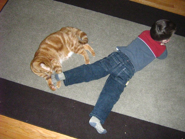 So if the boy is metre tall, you can figure out how big the cat attacking his foot is.