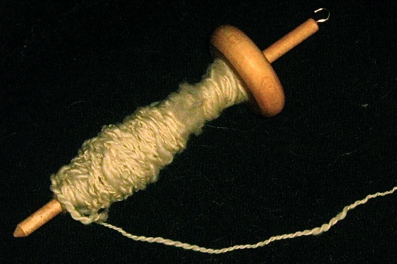 Here’s the first bit of plied yarn on the spindle, halfway through the process. I admit that I paused here to photograph it because of how perfect the yarn about to be wound onto the spindle shaft is. So even! So… worsted weight-ish!
