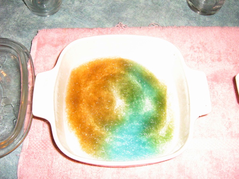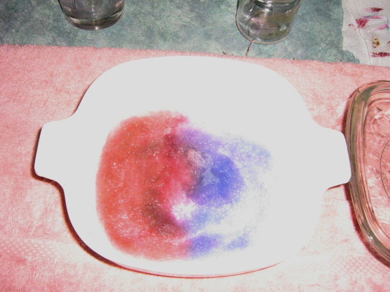 Here’s the burgundy/violet, after the first heating. Wow! Check out how drastically different the colour is after only two minutes in the microwave!