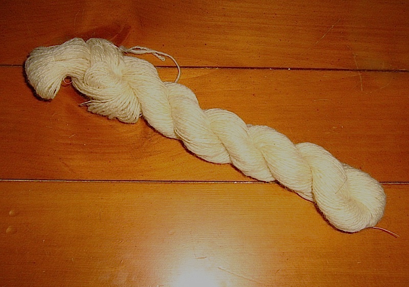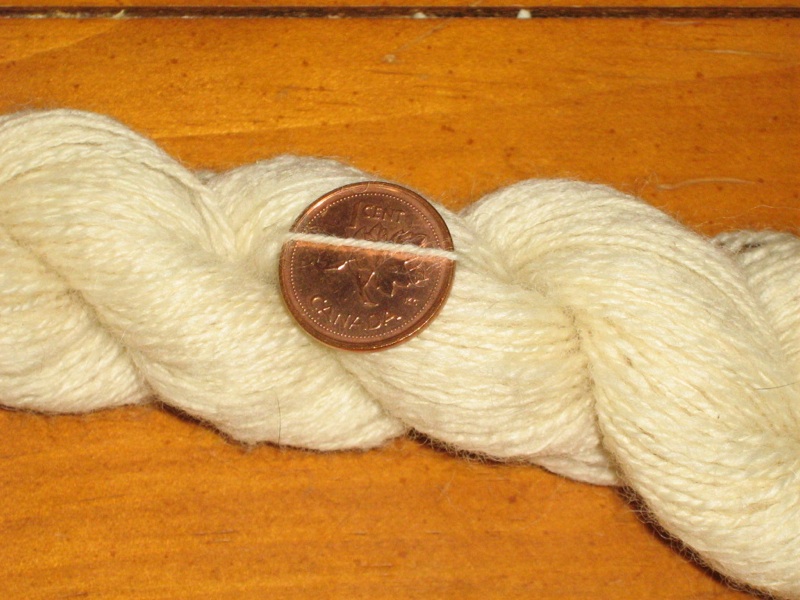 That thread I spun on Wednesday? I plied it then ran it through the wheel again to tighten up the ply, then set the twist. Took it to Ceri’s last night after my cello lesson when I dropped off her 255 yards of Aran-weight Corriedale (or Arin-weight Ceridale, as we have taken to calling it) and she very firmly demonstrated that it was, in fact, laceweight by comparing it to the lightest fingering weight she’s ever worked with.
