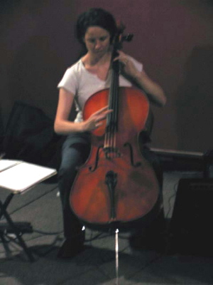 Tonight, though, I remembered why I play chamber music. I like it. I like it a lot. I enjoy the rhythms, the legato phrasing, the singing melody lines, the fugues, the dynamics. (In fact, the word "dynamics" recently escaped me until tonight, otherwise I would have used it during the dual band post-mortem to explain to Invisible why they thought the equipment settings were off so that the cello couldn't be heard in the opening verse of Hazy Shade Of Winter. I was playing with dynamics, using the side of the bow hair to make the barest whisper of sound to flow under Jan's bell-like chords. Compare the use of full bow hair and lots of arm weight to produce the solid grounded sound of the alternating two notes in the intro of Do You Remember Rock'n'Roll Radio. Pianissimo versus fortissimo.)