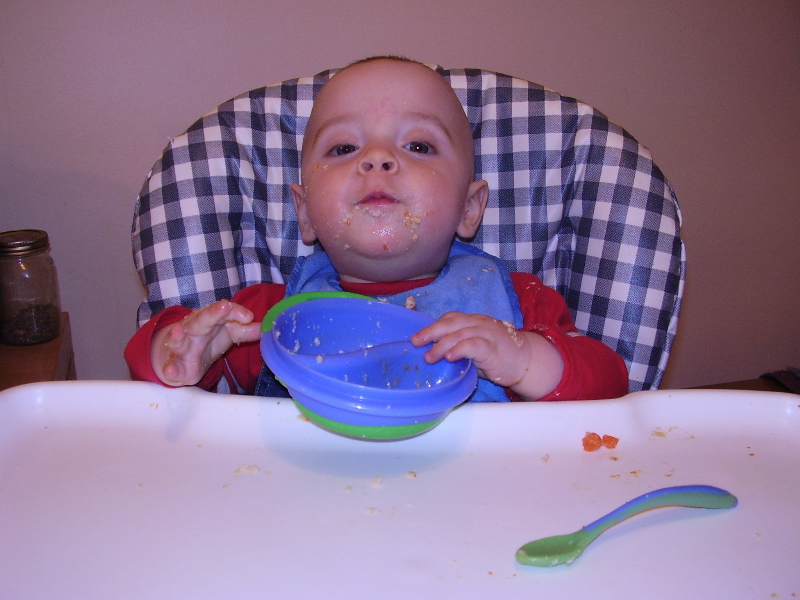 Liam eats anything and everything. Whatever he sees us eating, he wants to taste it, then eat lots of it!